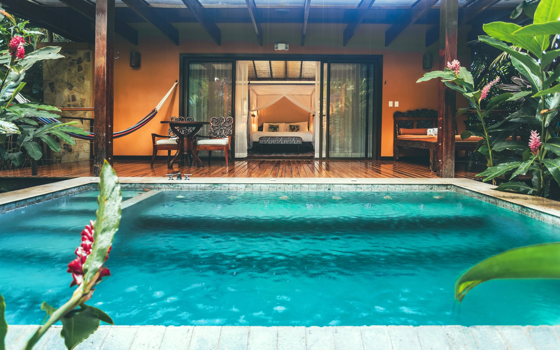 The vast and impressive Casa Paloma and Casa Dana private residences can host up to 12 guests. And along with the spring-water-powered pool, you’ll also have your fire pit. Fitting, considering your private terrace perfectly overlooks Arenal’s once-fiery volcano.