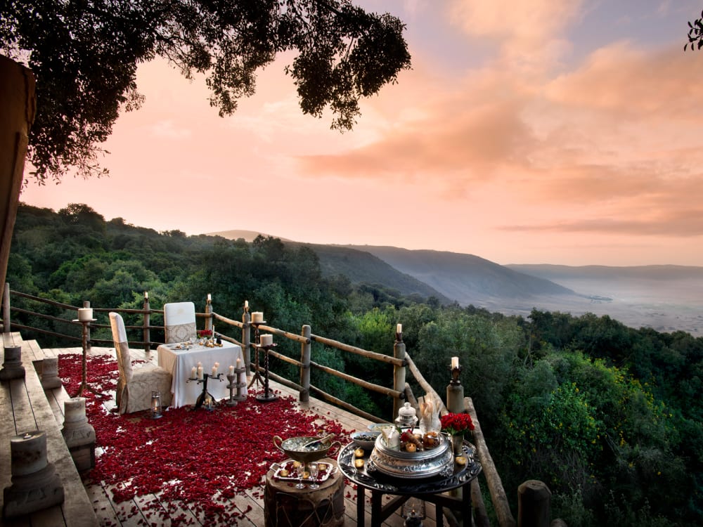Stay in a magical thatched circular lodge with opulent interiors, romantic lighting, and beautiful African artwork. Take in spectacular views of the crater from your own room and enjoy onsite facilities, which make for a luxurious stay. Have a truly exclusive stay in the care of a personal butler who will complete any request, big or small. Enjoy complimentary laundry services, a personal fireplace, and electric blankets for ultimate comfort. To top it all off, end a day exploring with a luxury rose petal bubble bath. Explore this phenomenal environment with guided walks, game drives, village visits, and lake excursions. Guided walking safaris follow routes around the crater rim, while morning and afternoon game drives take you right into the crater in 20 minutes. Watch dancing and browse intricate handicrafts in a village visit, or visit the stunning Empakaai Crater. For something a little bit more intimate, you can book a private bush breakfast or lunch or simply spend the evening having a relaxing sundowner. The dining and drawing room and lounge areas are undeniably elegant, with soft lighting, a well-appointed bar, and beautiful views of the crater. Enjoy organic classic fine dining in the dining room with crystal and silver crockery and cutlery, accompanied by top international wines.